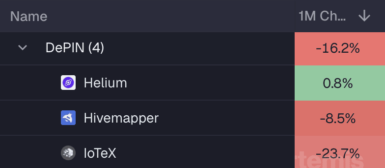 Faire partie du top 5 des secteurs avec -16%, c'est révélateur de l'état général du marché. Seul Helium reste légèrement positif à +0,8%.