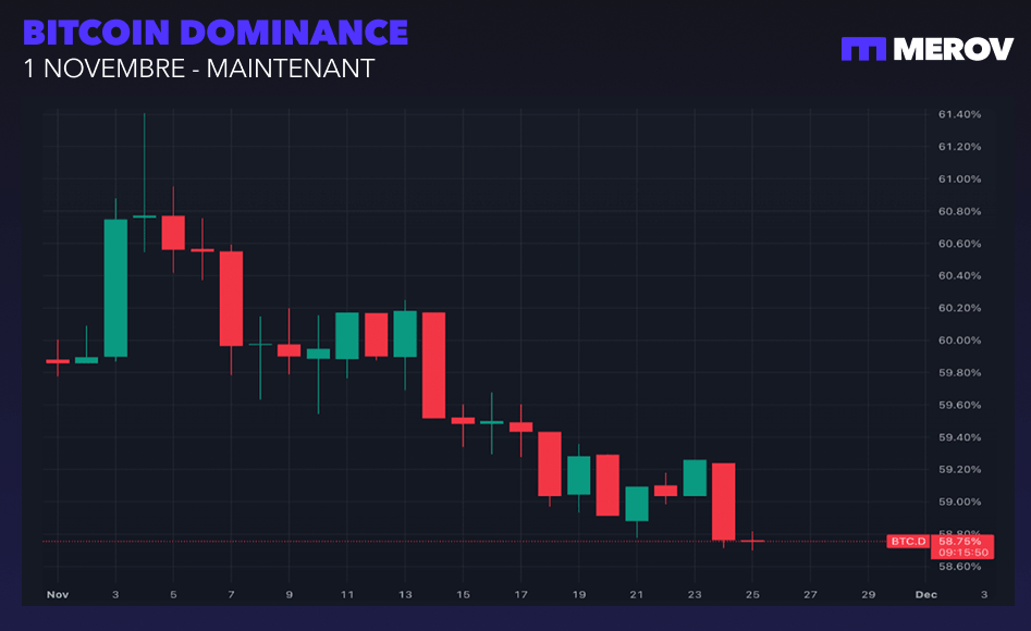 Une remontée stable de la dominance Bitcoin signalerait que le marché reconstruit ses bases avant la prochaine vraie jambe haussière.