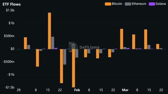 Graphique "ETF Flows" Bitcoin/Ethereum/Solana