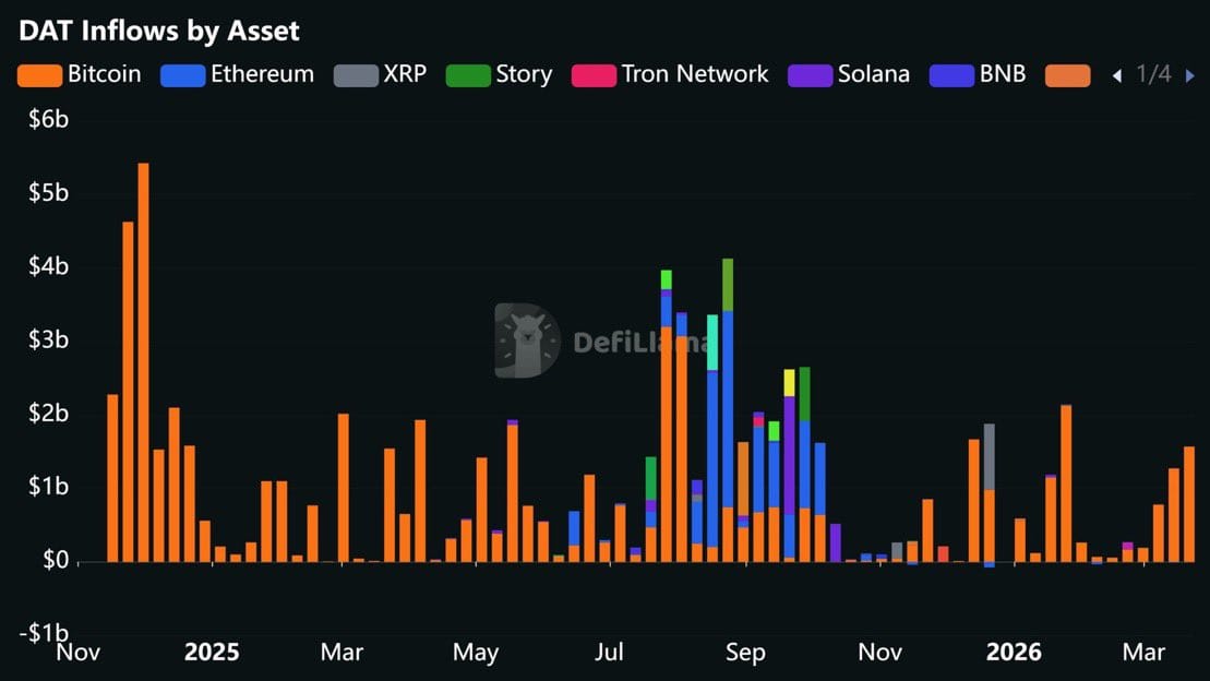 Graphique "DAT Inflows by Asset" Bitcoin/Ethereum/XRP/Solana